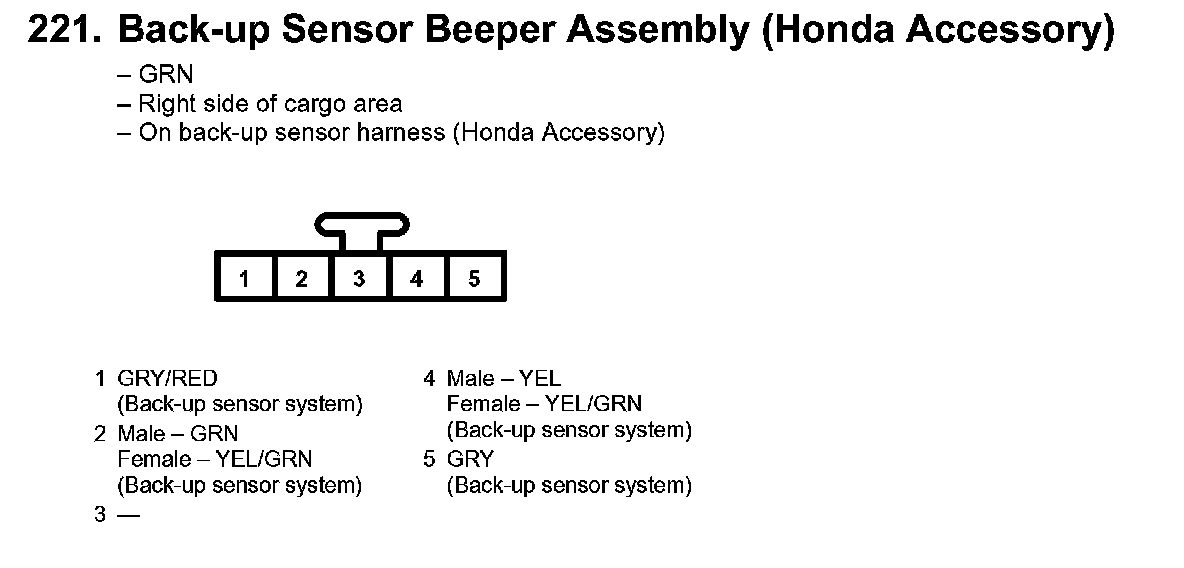 221. Back-up Sensor Beeper Assembly (Honda Accessory):