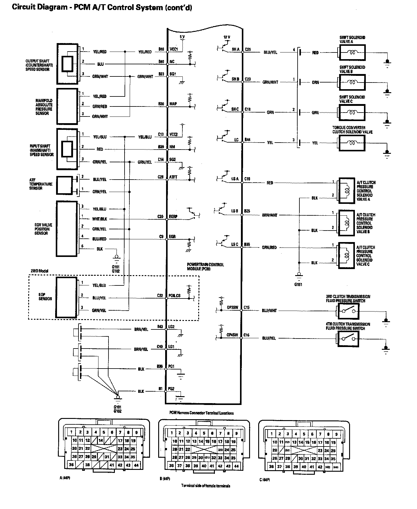 PCM A/T Control System Circuit Diagram (Part 2):