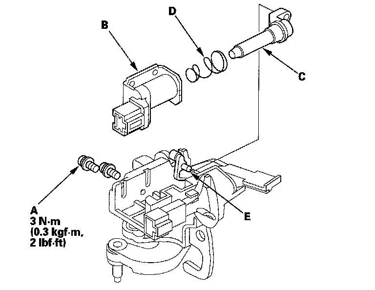 5. Apply silicone grease to the tip (E) of the shift lock extension, and install the shift lock solenoid by aligning the joint of the shift lock solenoid plunger with the tip of the shift lock extension.