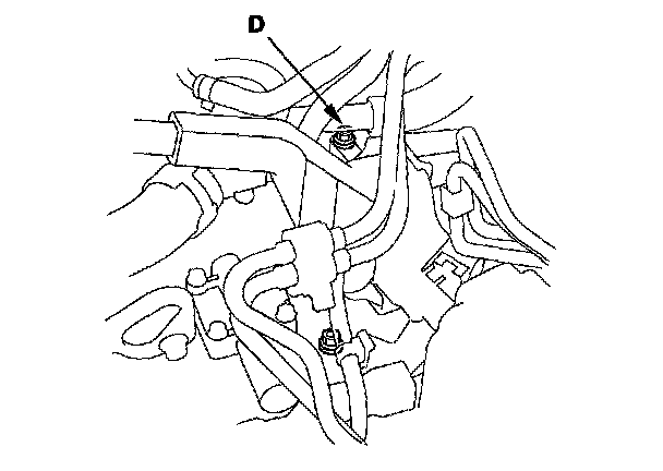 12. Remove the intake manifold cover and intake air duct, and connect the oil pressure gauge to the 2nd clutch pressure inspection port (D). Then temporarily install the intake air duct.