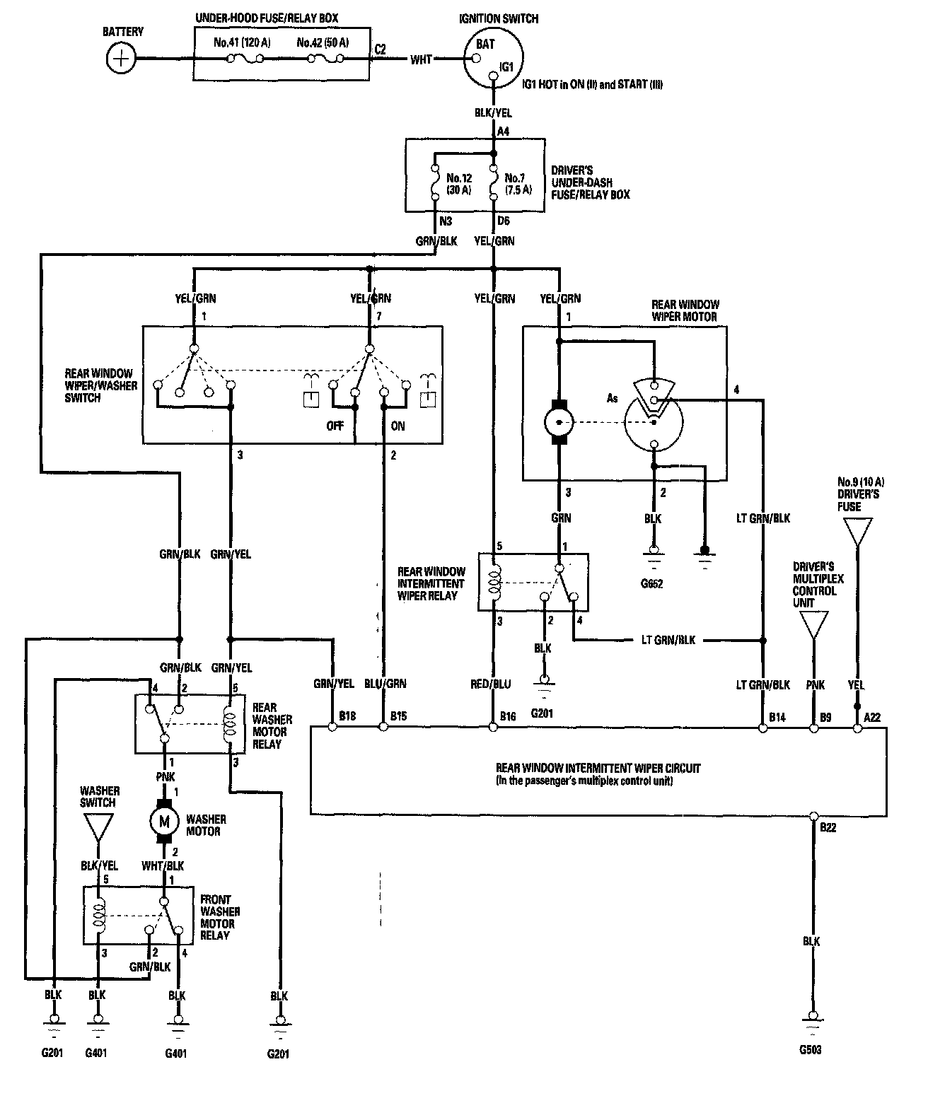 Wipers/Washers Circuit Diagram - Rear Window: