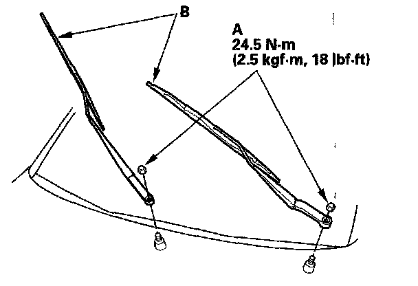 - Before reinstalling the wiper arms, turn the wiper switch ON, then OFF to return the wiper shafts to the park position.