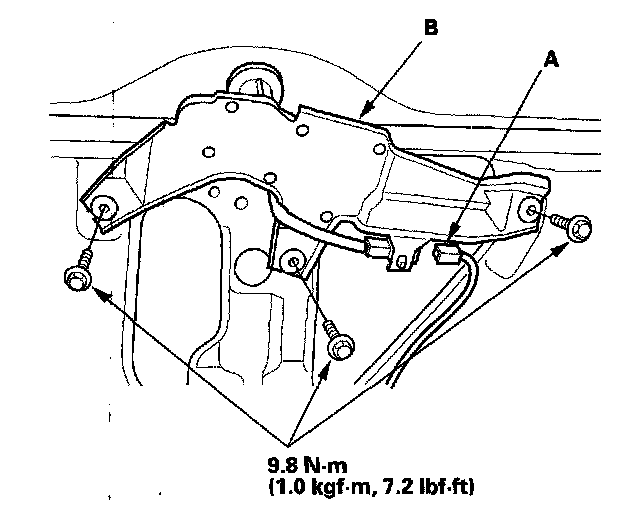 3. Disconnect the 4P connector (A) from the rear window wiper motor (B).