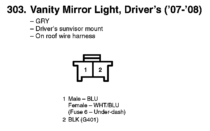 303. Vanity Mirror Light, Driver's: