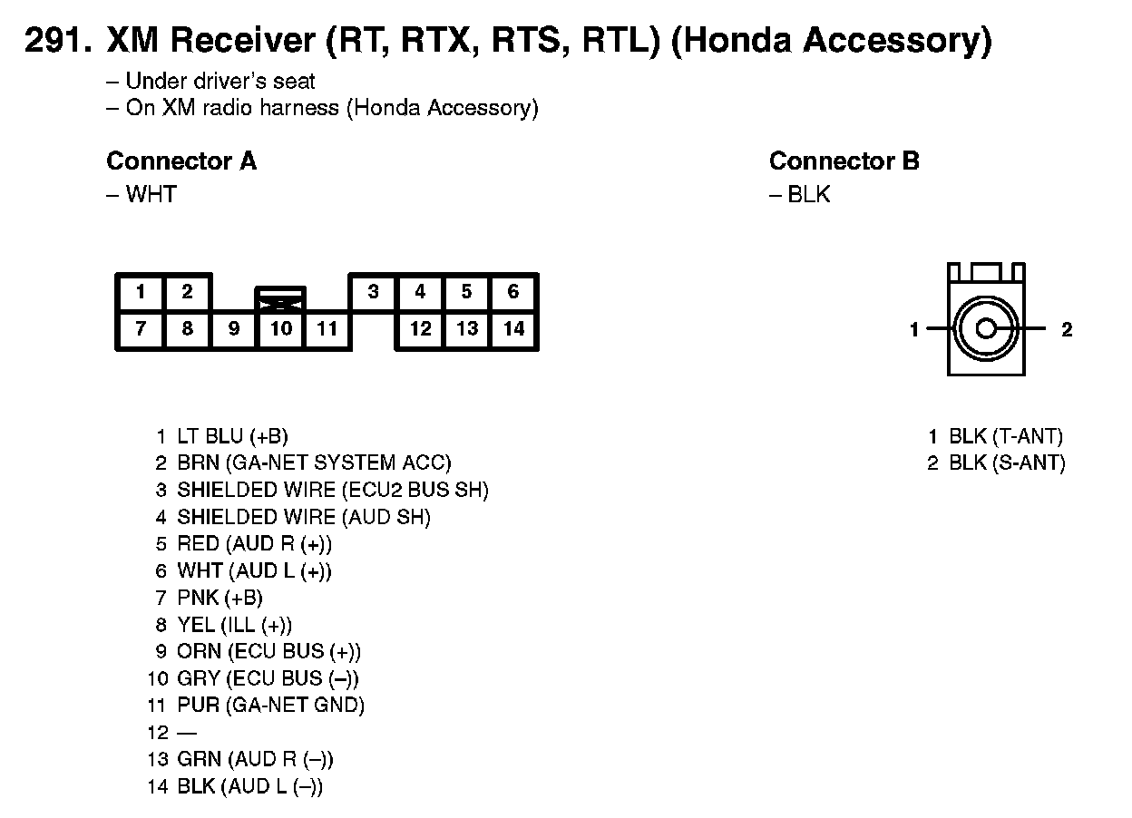 291. XM Receiver (RT, RTX, RTS, RTL) (Honda Accessory):