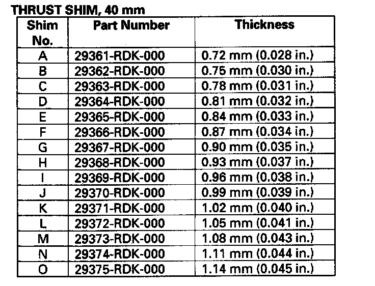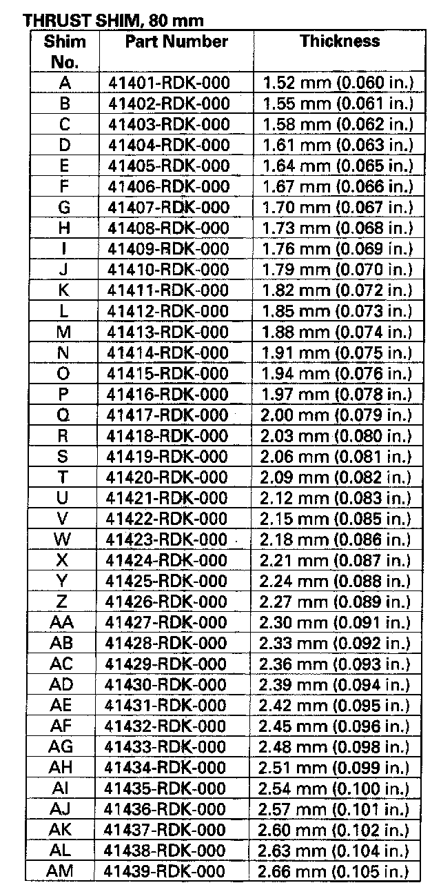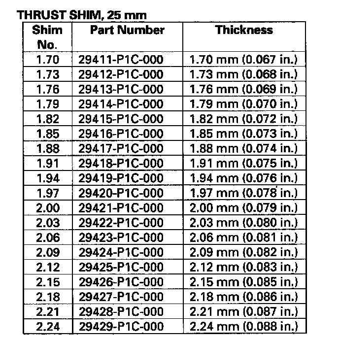 - Reduce the thickness of the 80 mm thrust shim by the amount of increase thickness of the 25 mm thrust shim.