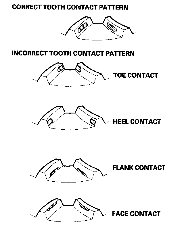 Face contact must be adjusted within the limits of the transfer gear backlash, If the backlash exceeds the limits, adjust as described under Toe Contact.