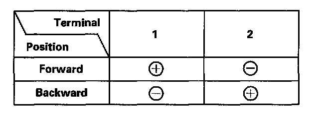 3. Test the motor in each direction by connecting battery power and ground according to the table. When the motor stops running, disconnect one lead immediately.