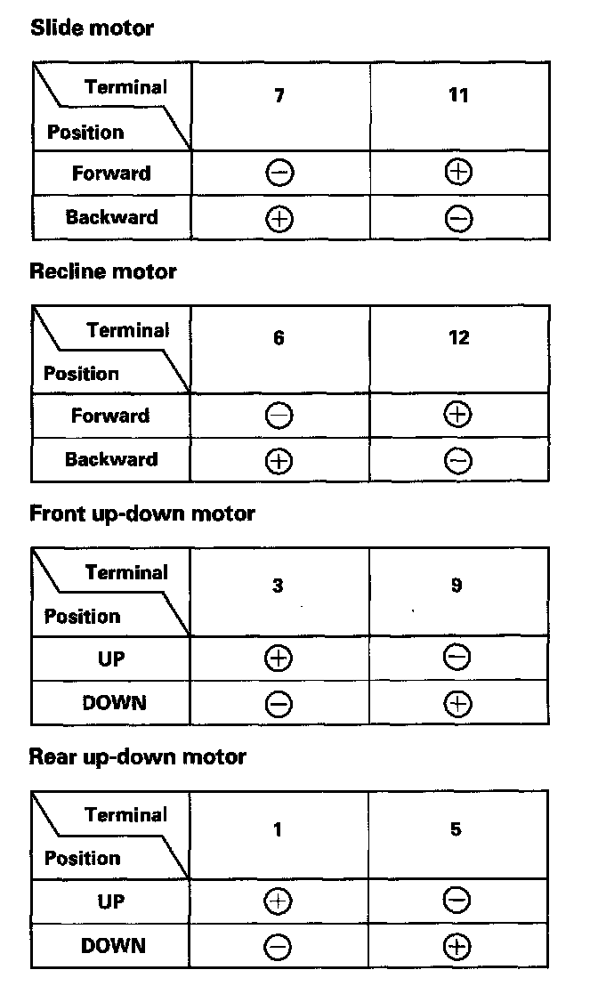 4. If the motor does not run or fails to run smoothly, check for an open in the driver's seat wire harness between the 12P connector and each motor connector. If the harness is OK, replace the motor.