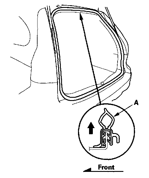 Tailgate Weatherstrip Replacement1. Remove the tailgate weatherstrip (A) by pulling out on it.