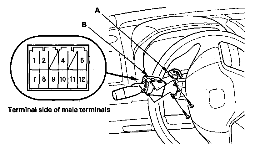 3. Disconnect the 12P connector (A) from the combination light switch (B).