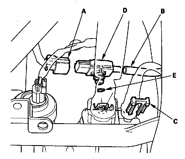 6. Install the parts in the reverse order of removal with a new O-ring (E) and a new retainer.