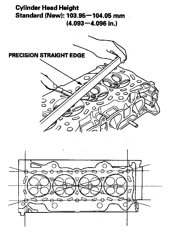 If warpage is between 0.05 mm (0.002 in.) and 0.2 mm (0.008 in.), resurface the cylinder head.