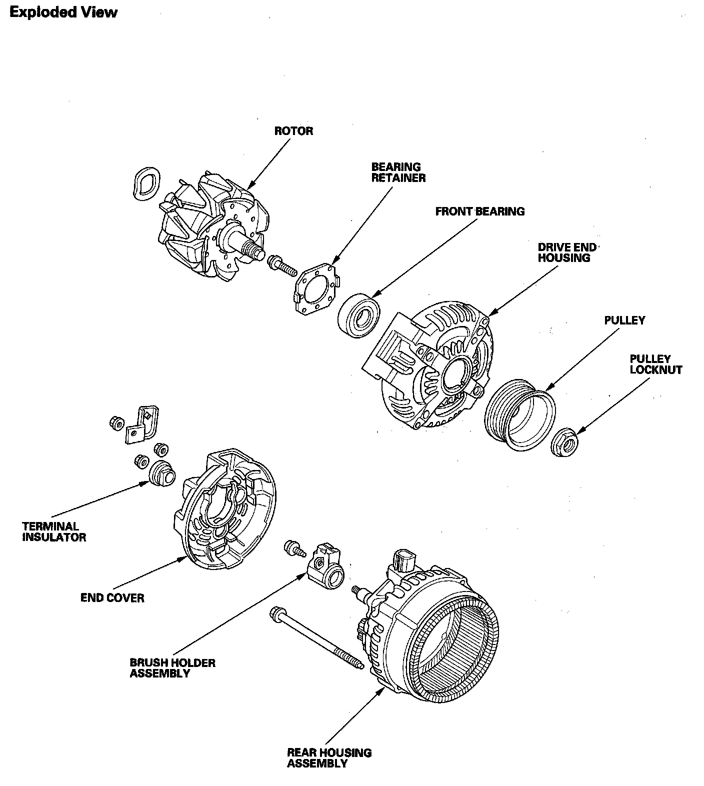 22. After assembling the alternator, turn the pulley by hand to make sure the rotor turns smoothly and without noise.