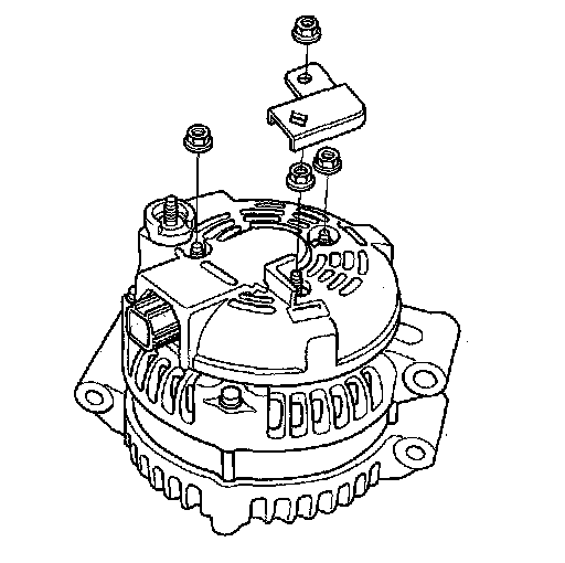 4. Remove the harness stay and the three flange nuts from the alternator.