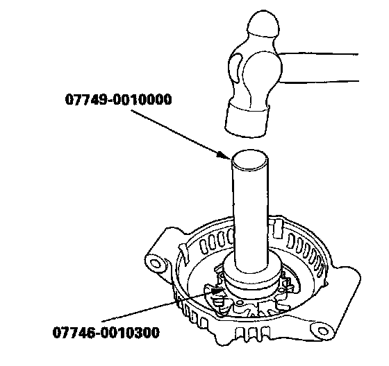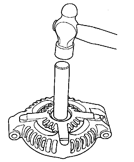 12. Install a new front bearing in the drive end housing with a hammer, the handle driver, and attachment.