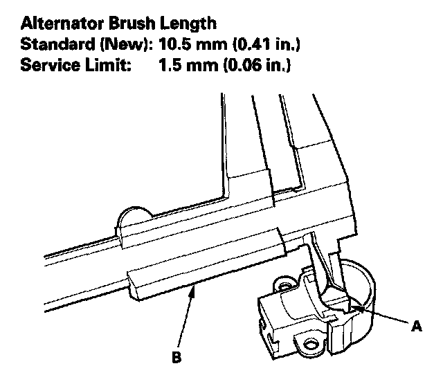 - If either brush is shorter than the service limit, replace the brush holder assembly.