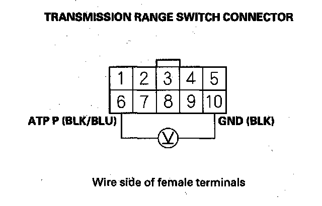 23. Measure the voltage between transmission range switch connector terminals No. 6 and No. 10.