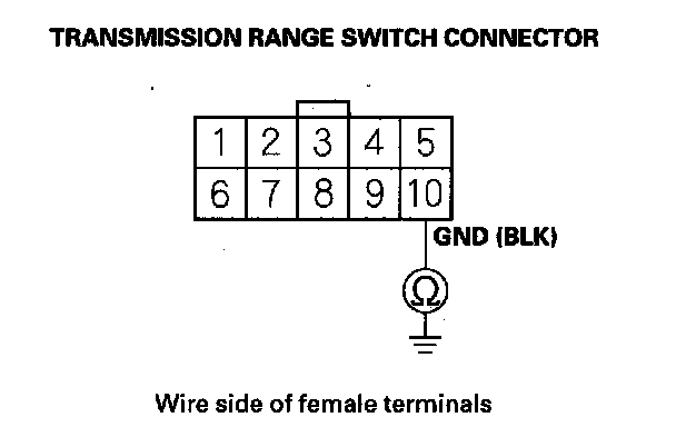 28. Check for continuity between transmission range switch connector terminal No. 10 and body ground.