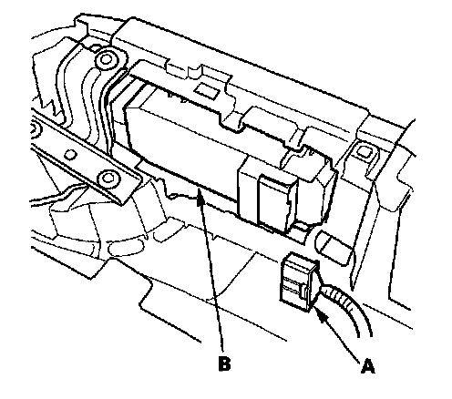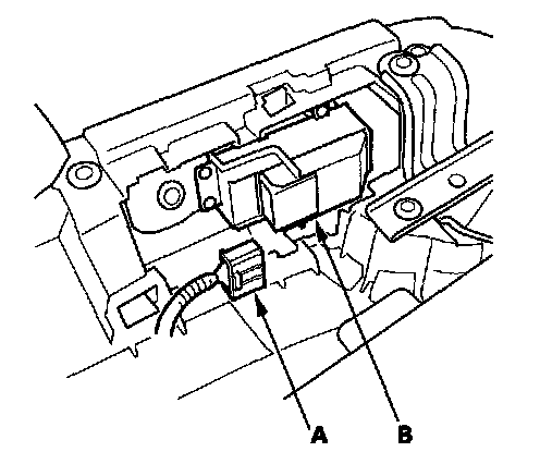 2. Disconnect the 8P connector (A) from the passenger's power window switch (B).