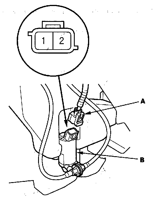 3. Test the motor by connecting battery power to the No. 2 [No. 1] terminal and ground the No. 1 [No. 2] terminal of the washer motor. The motor should run.