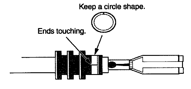 3. Strip the insulation off the end of the wire so the wire fits in the new terminal as shown. (If the wire has a wire seal, replace it with a new one from the kit.)