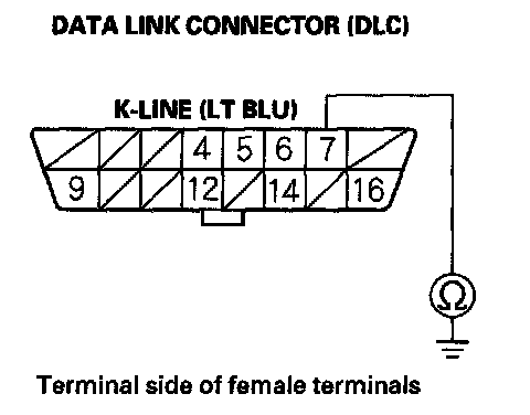 17. Check for continuity between DLC terminal No. 7 and body ground.