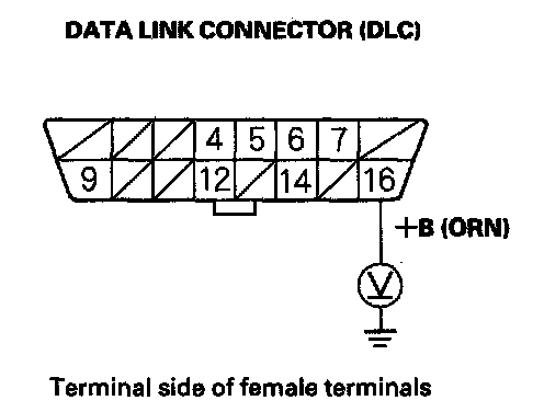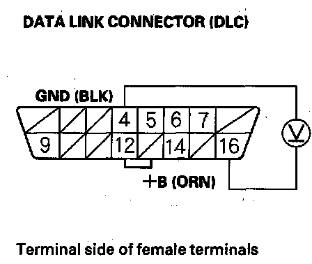 25. Measure voltage between DLC terminal No. 16 and body ground.