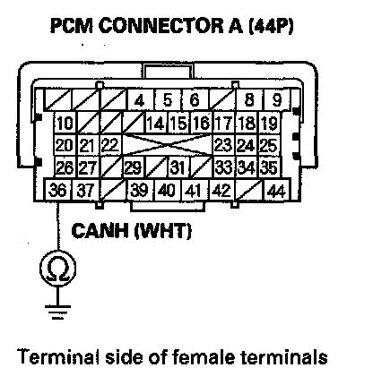 32. Check for continuity between PCM connector terminal A36 and body ground.