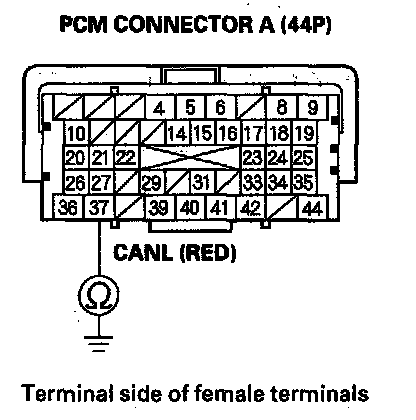 34. Check for continuity between PCM connector terminal A37 and body ground.