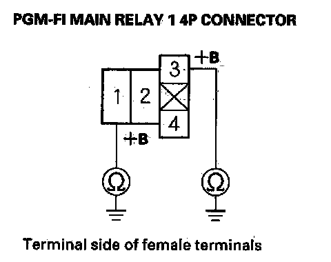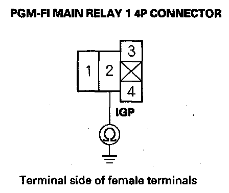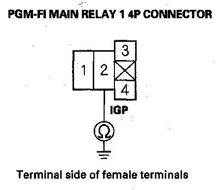 41. Check for continuity between body ground and PGM-FI main relay 1 4P connector terminals No. 1 and No. 3 individually.