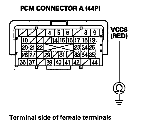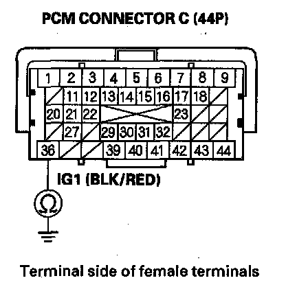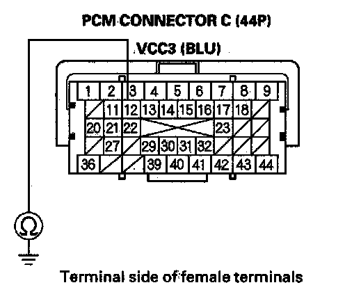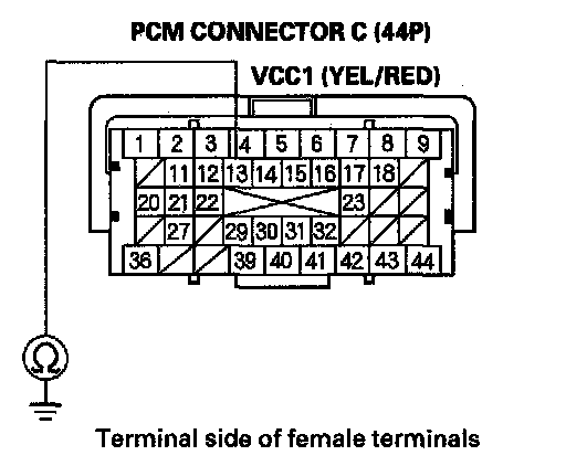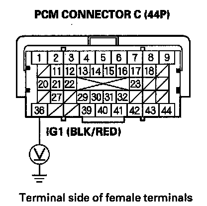 61. Measure voltage between PCM connector terminal C36 and body ground.