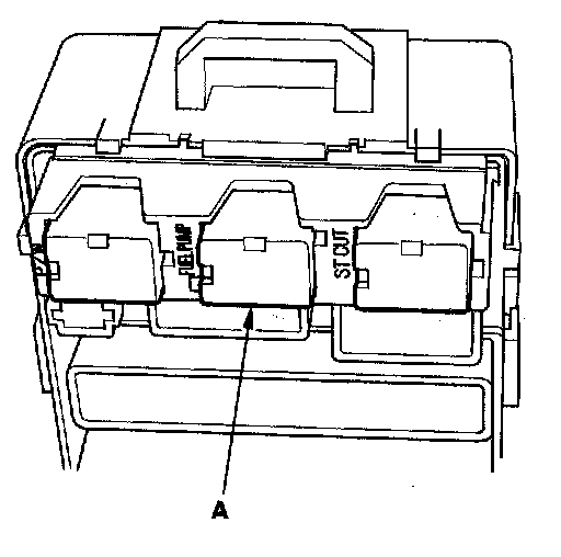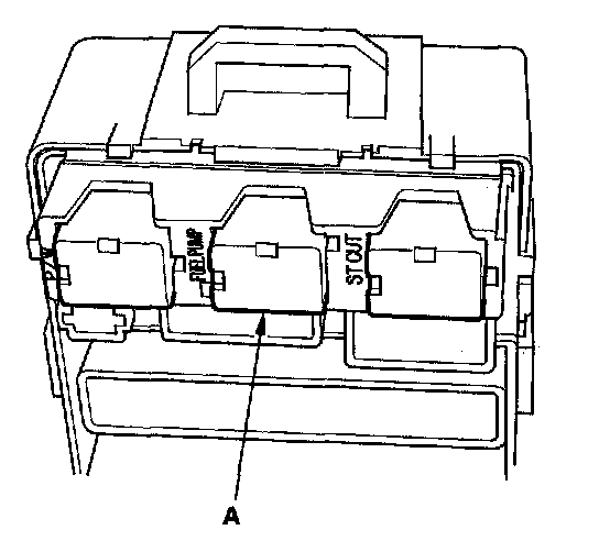 50. Remove PGM-FI main relay 2 (FUEL PUMP) (A) from the under-dash fuse/relay box.