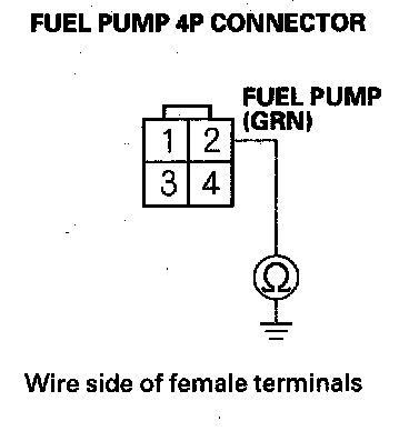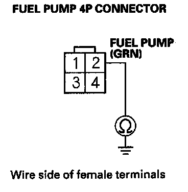 55. Check for continuity between fuel pump 4P connector terminal No. 2 and body ground.