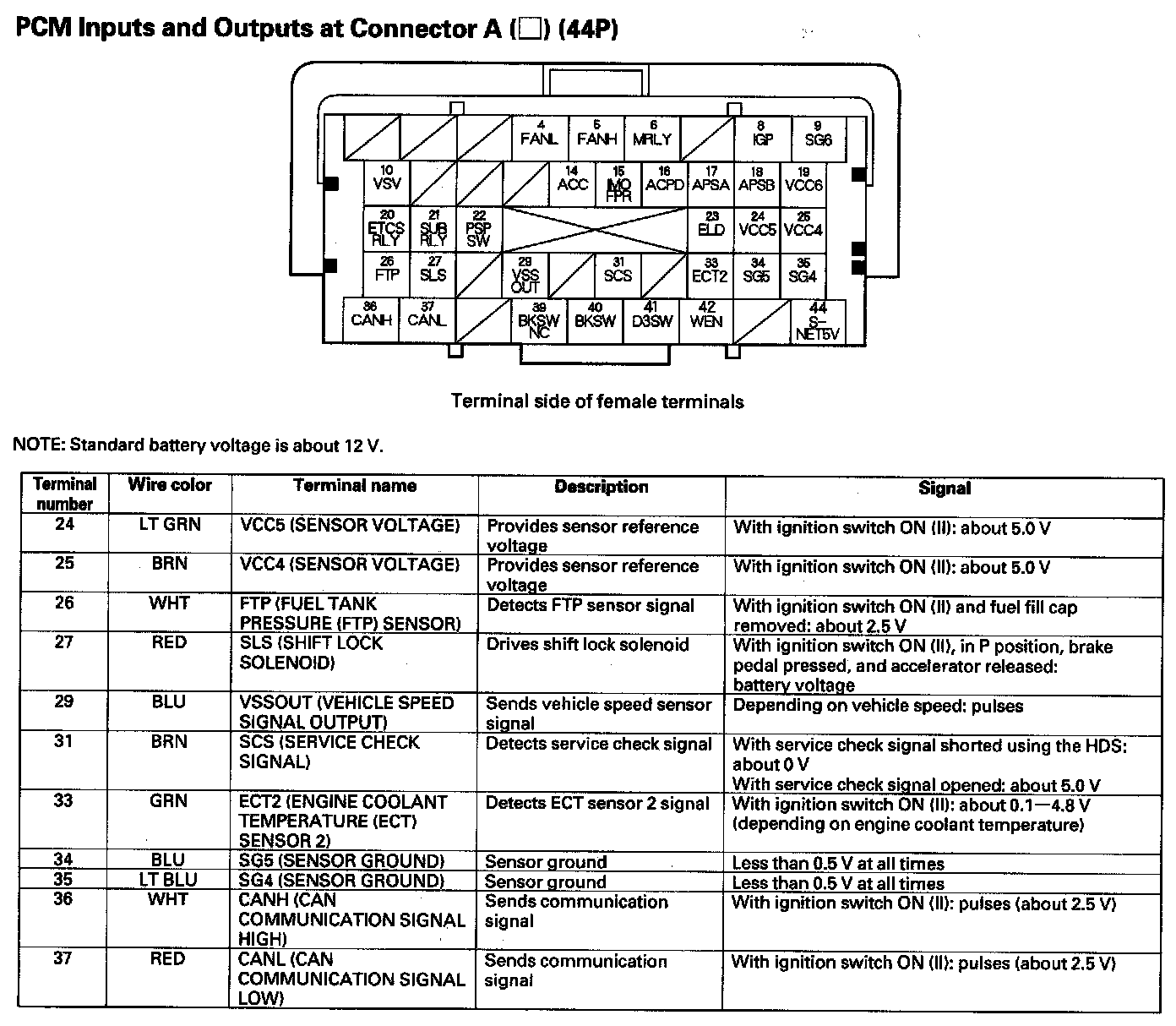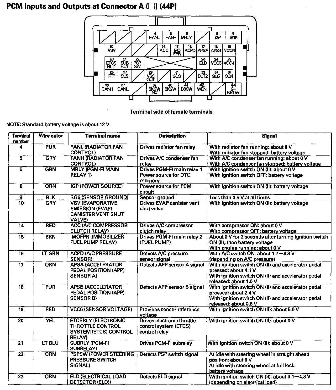 PCM Inputs and Outputs at Connector A (44P) (Part 2):