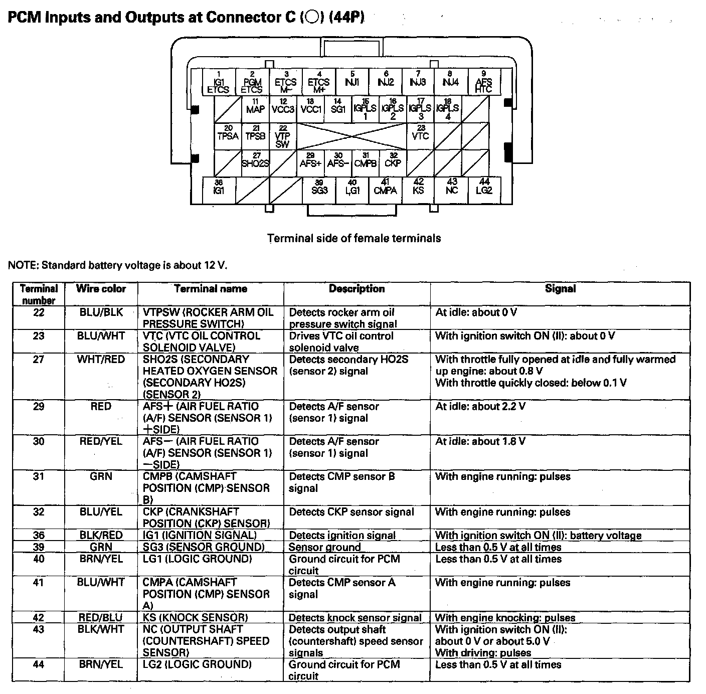 PCM Inputs and Outputs at Connector C (44P) (Part 1):