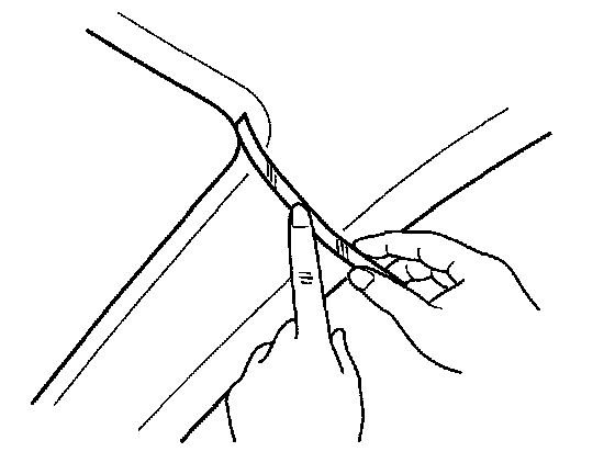 - If the overlap is less than 0.3 in. (8 mm), remove the tape, and install the pillar trim.