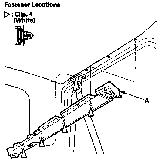 6. Detach the clips by pulling the trim back, then remove the upper quarter window trim (A).