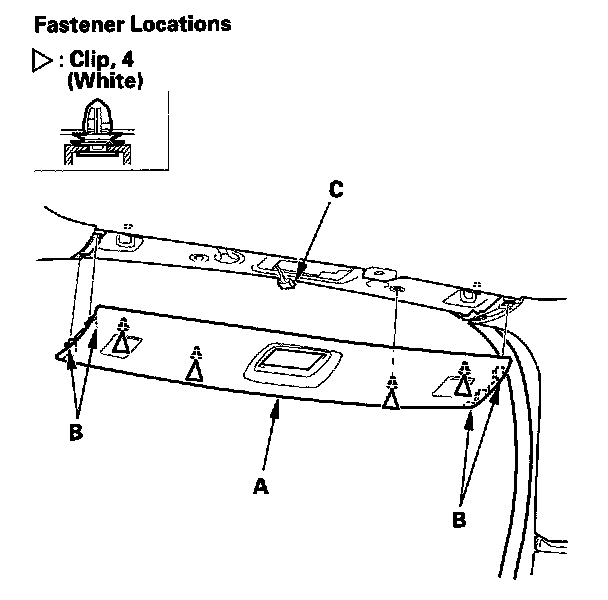 1. Detach the clips (B, C) by pulling the trim back.