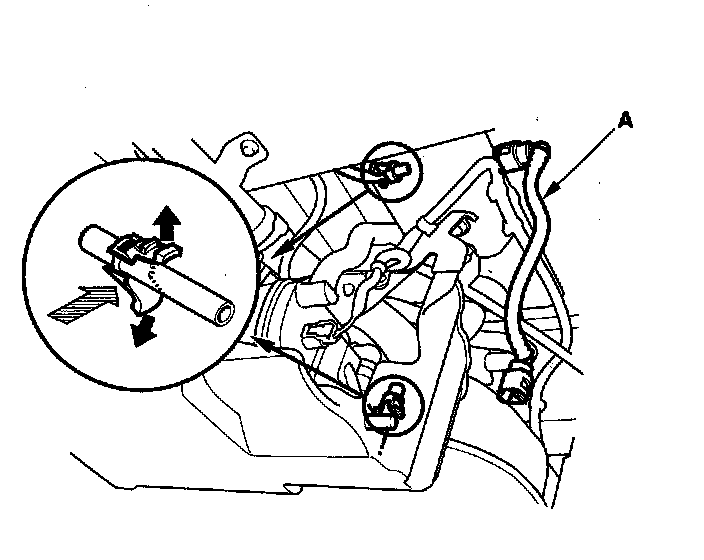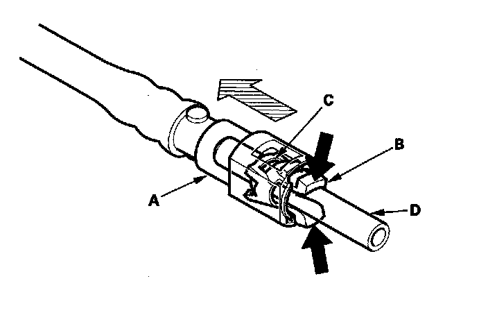 3. Before connecting a new fuel line/quick-connect fitting assembly (A), remove the old retainer from the mating line.
