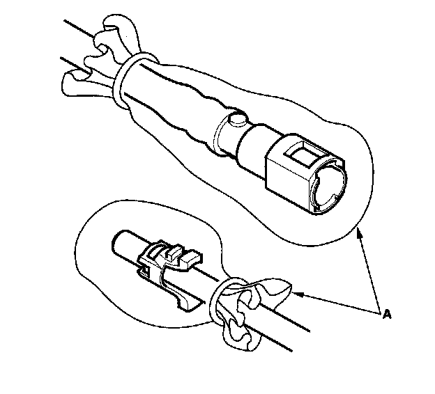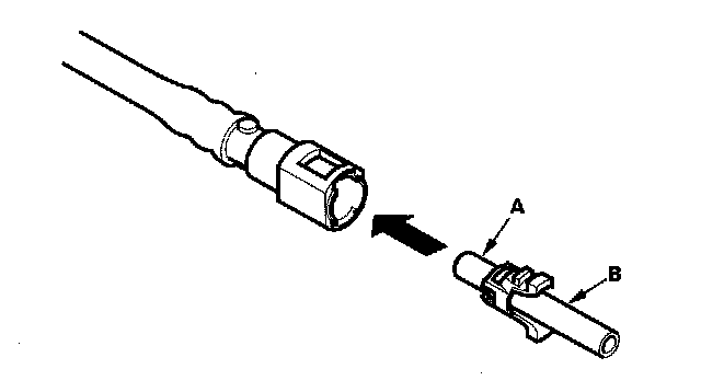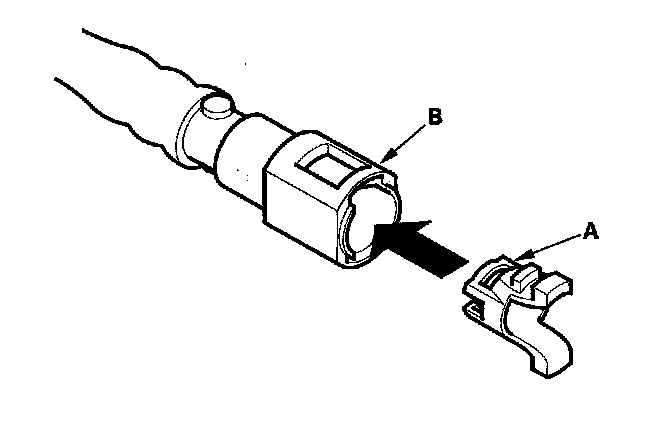 2. Insert a new retainer (A) into the connector (B) if the retainer is damaged, or after: