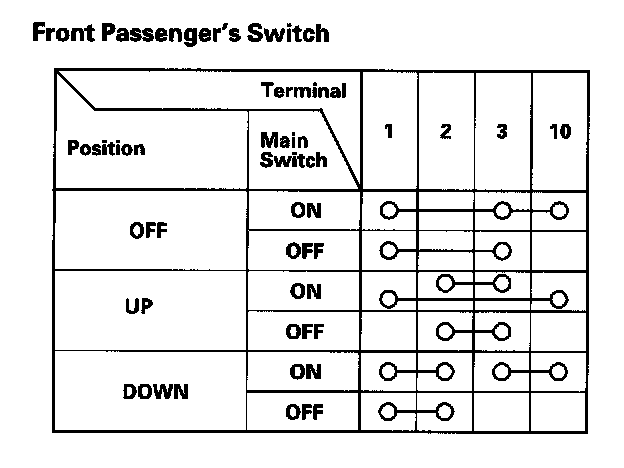 The driver's switch is combined with the control unit so you cannot isolate the switch to test it. Instead, do the master switch input test. If the tests are normal, the driver's switch must be faulty.