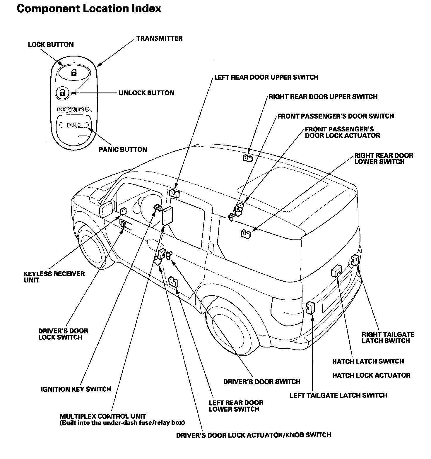 Keyless/Power Door Lock System Component Location Index: