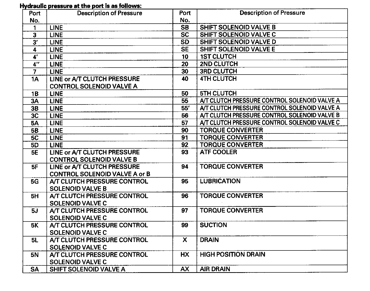 Hydraulic pressure at the port is as follows:
