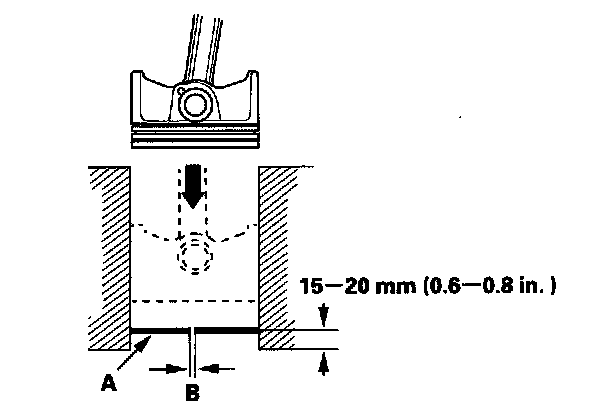 5. Measure the piston ring end-gap (B) with a feeler gauge: