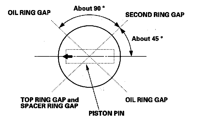 8. Position the ring end gaps as shown: