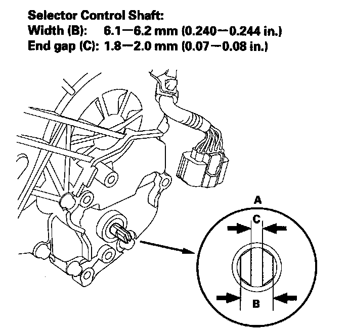 9. If the measurement of the selector control shaft end is within the standard, replace the transmission range switch. If the measurement is out of the standard, repair the selector control shaft end, and recheck the transmission range switch continuity.