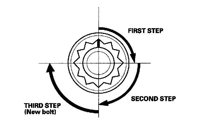 Torque the bolts/nuts in a crisscross pattern in three steps, beginning with the inner bolt.