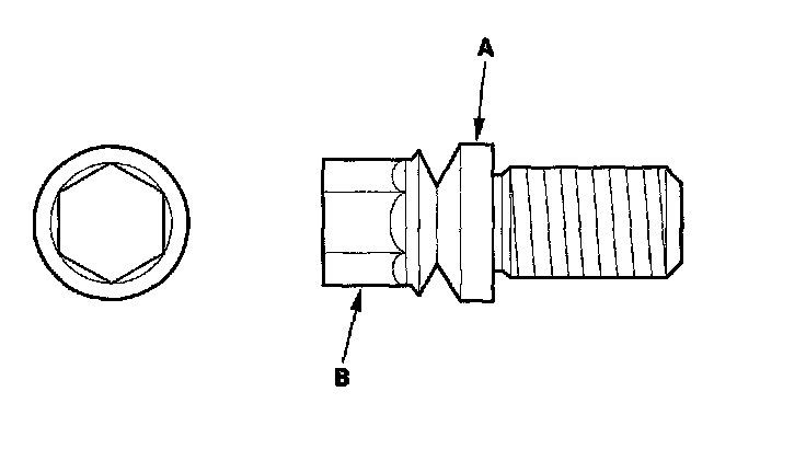 7. Tighten the shear bolts (A) until the hex heads (B) twist off.