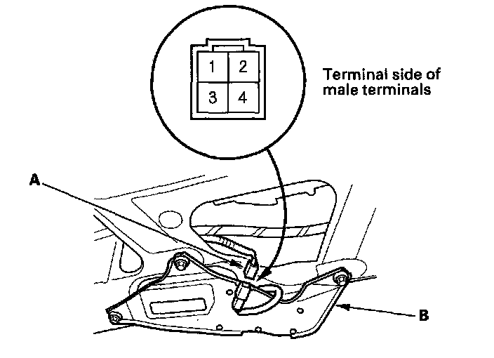 2. Disconnect the 4P connector (A) from the wiper motor (B).